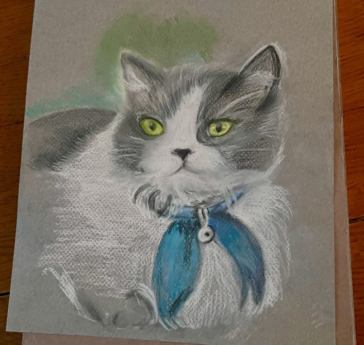 I love how the picture comes alive with every stroke of the chalk pencil, this is a picture of my daughters cat, its my first attempt and rough around the edges, it only took me about an hour, I was limited on time but eager to try my new chalk pencils out!