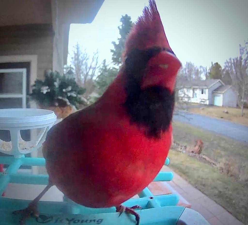 Anyhoo, back to the birdy, this beautiful Northern Cardinal has been showing up at our feeder with another female cardinal for the past few weeks. Watching them take turns with each other and the other birds at the feeder is always entertaining for me. Sometimes it’s like they are looking directly at you through the camera. However, the cardinal brought more meaning to me this Easter. Last year, we lost our beautiful mom to cancer. It was a year ago this past Saturday that we all gathered to celebrate her wonderful life and all the blessings she brought to this earth. Her favourite bird was the Northern Cardinal; in fact, she had a lot of bird “things” in her home. Whilst I know that the birds are drawn to the feeders simply for the food, I also believe they visit to remind us of Mom’s beautiful spirit, and a simple reminder that whilst she is no longer physically with us, she is always in our hearts and memories, its also evident that her mannerisms and love of her family live on through her three wonderful sons.